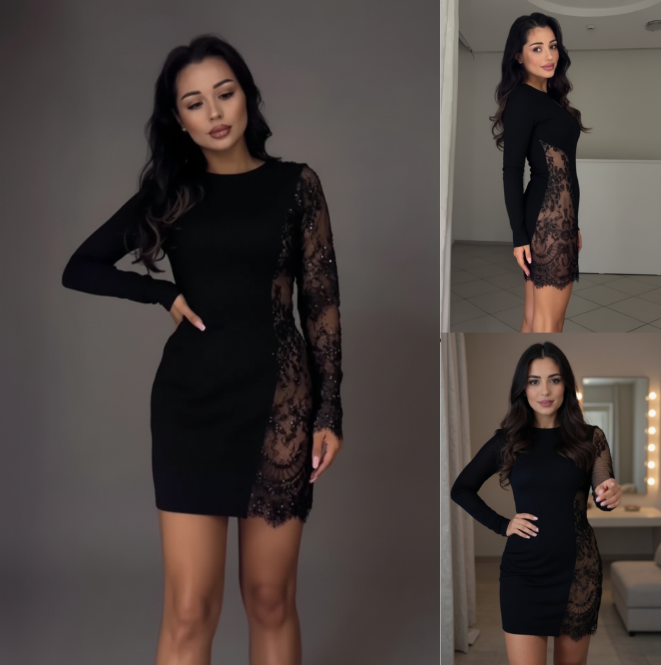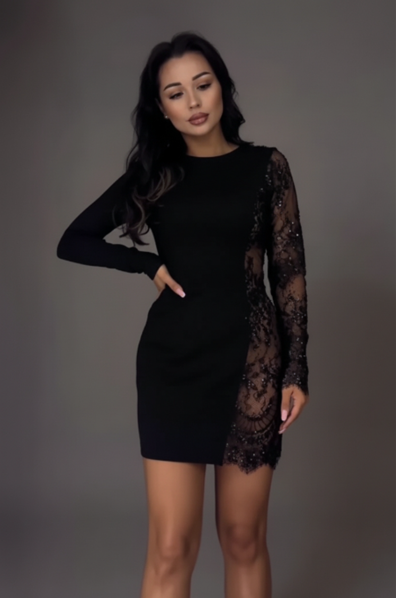 La coupe ajustée de cette robe agit comme une étreinte subtile : elle souligne les hanches, la taille et le buste d’une manière si naturelle que votre démarche devient plus assurée. Les détails transparents en tissu fin et délicat créent un jeu de lumière sur la peau, ajoutant une touche de mystère et d’éclat.