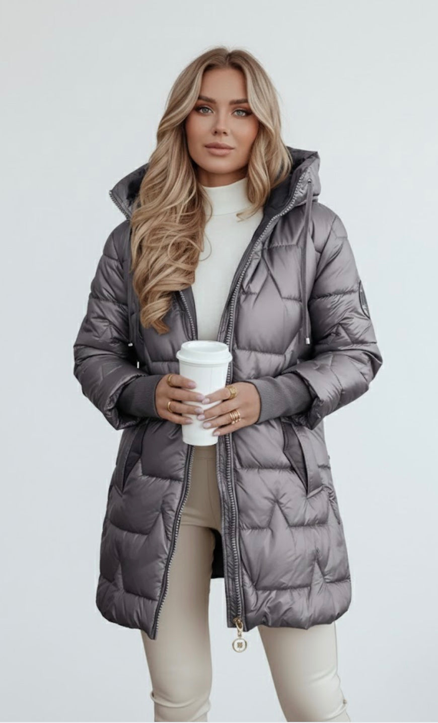 Coupe longue et capuche enveloppante : protège du froid et affine la silhouette